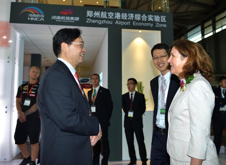 Mr. Zhang Mingchao thanked for the attention of Ms. Birgitta Worringen and Ms. Li Jun. He introduced the general development situation of Zhengzhou Airport Economic Zone, current industry development and future strategic planning of HNCA, as the main construction entity of the Zone, to them respectively. Mr. Zhang Mingchao said the cooperation between HNCA and Cargolux is going very smoothly, and both sides are working together to actively promote the substantial operation of China-Europe dual hub strategy to set up air freight silk road from China to Europe. This Expo provided a very precious opportunity for HNCA. He hopes that utilizing this beneficial platform can enhance communication with related fields home and abroad, strive to develop airport economy, further expand international trade and air cargo business and achieve multilateral win-win cooperation.