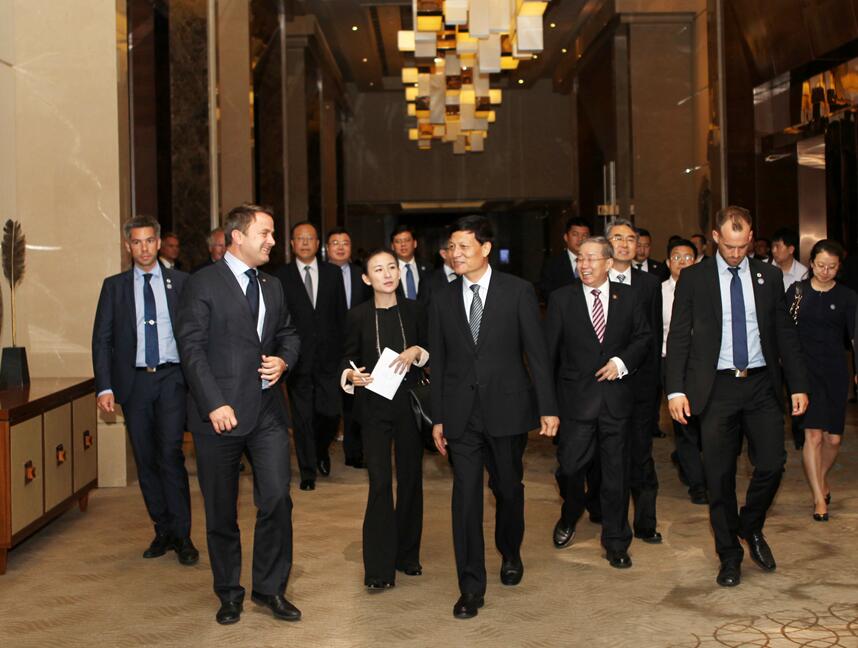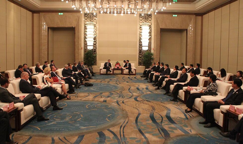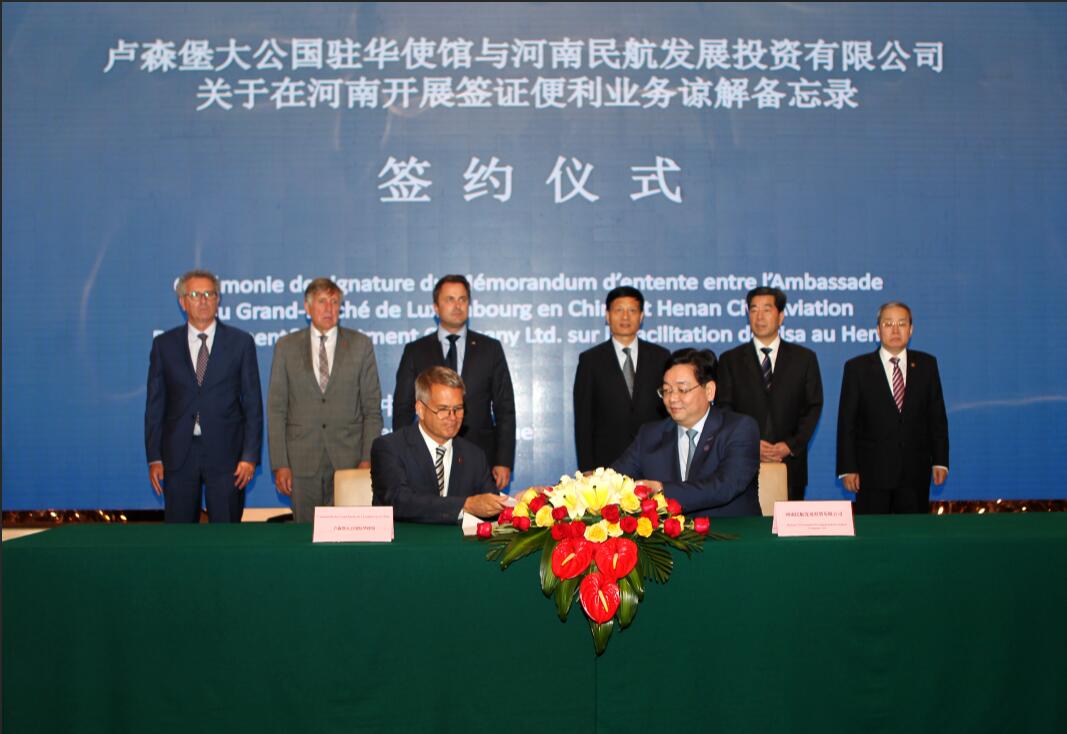 6月13日,省委書記、省人大常委會主任謝伏瞻在鄭州會見了來豫訪問的盧森堡首相格扎維埃?貝泰爾一行,并和省長陳潤兒共同見證有關合作協議的簽署。河南航投黨委書記、董事長張明超一同參加會見,并代表河南航投與盧森堡駐華大使石泰嵋簽署《關于在河南開展簽證便利業務諒解備忘錄》.